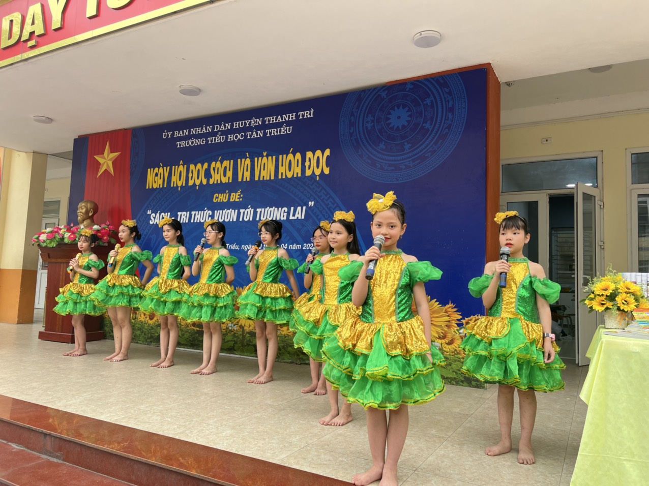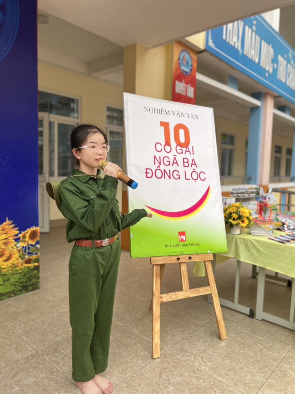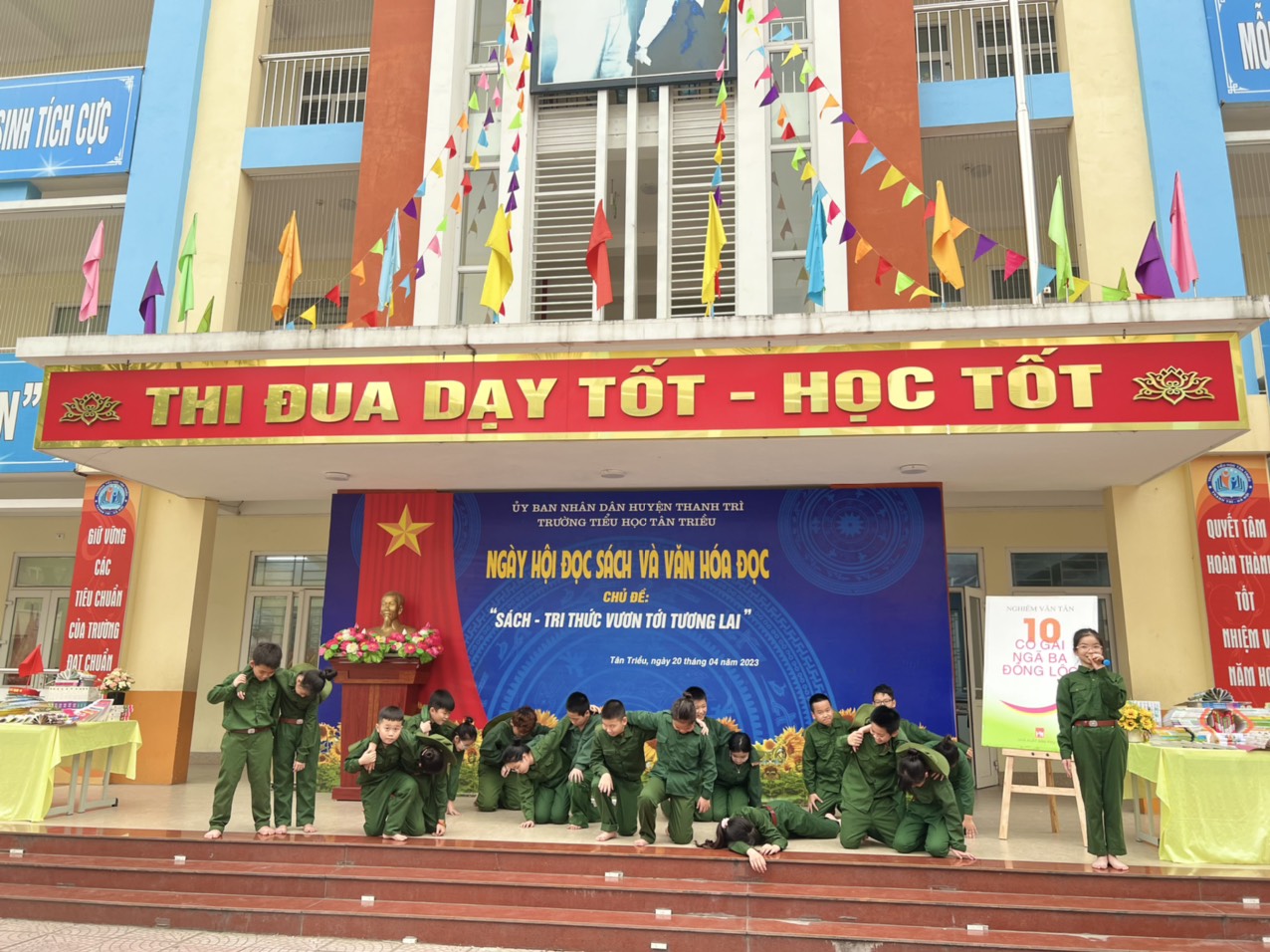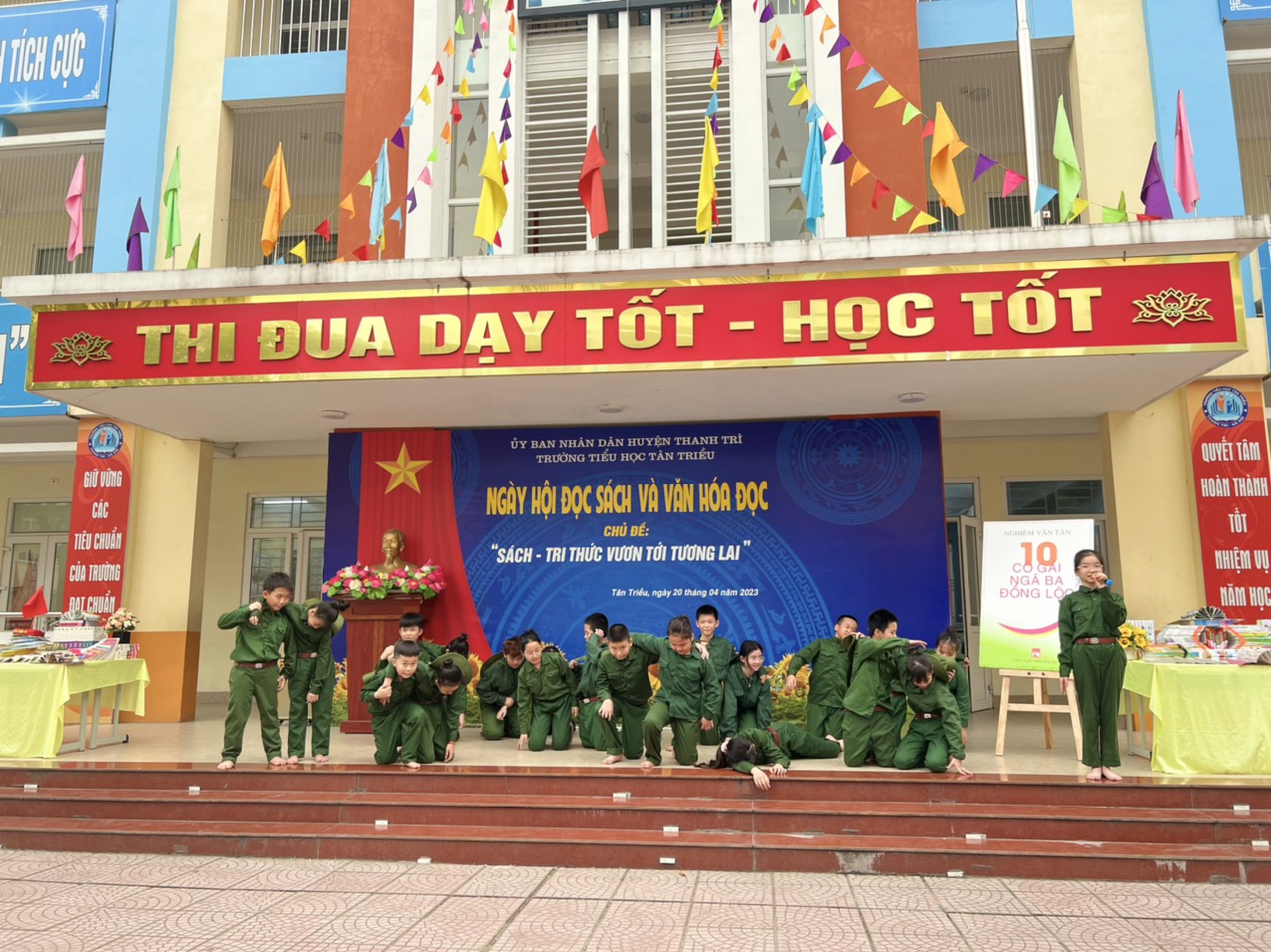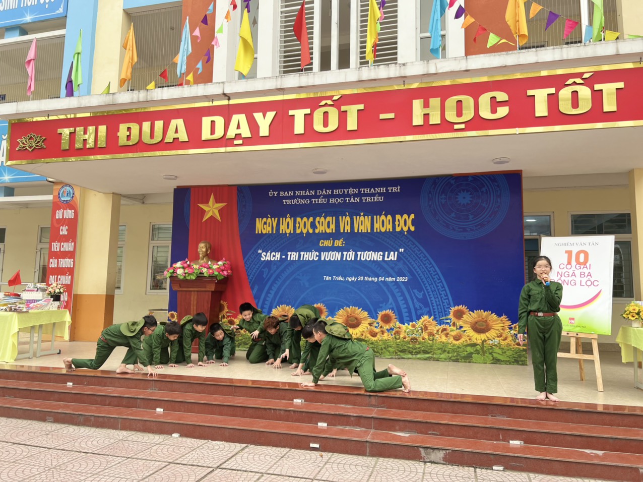 📚Ngày hội đọc sách tại Trường Tiểu học Tân Triều mang ý nghĩa nhân văn sâu sắc, giúp các em học sinh được tiếp cận với nhiều loại sách, tìm được niềm vui trong đọc sách, hình thành thói quen đọc sách bổ ích để mở rộng kiến thức, nuôi dưỡng tâm hồn; góp phần giáo dục kĩ năng sống. Đây còn là dịp để học sinh giao lưu, học tập tạo nên không gian văn hoá, vui tươi, bổ ích cho tất cả bạn đọc và những người yêu sách, đồng thời tôn vinh sách, khẳng định vai trò, giá trị của sách trong đời sống xã hội. Đặc biệt trong ngày hội, bạn Đào Thu Giang lớp 5A4 cùng các bạn trong đội văn nghệ nhà trường đã tái hiện lại hoạt cảnh của câu chuyện 10 cô gái Ngã ba Đồng Lộc vô cùng xúc động và ấn tượng.