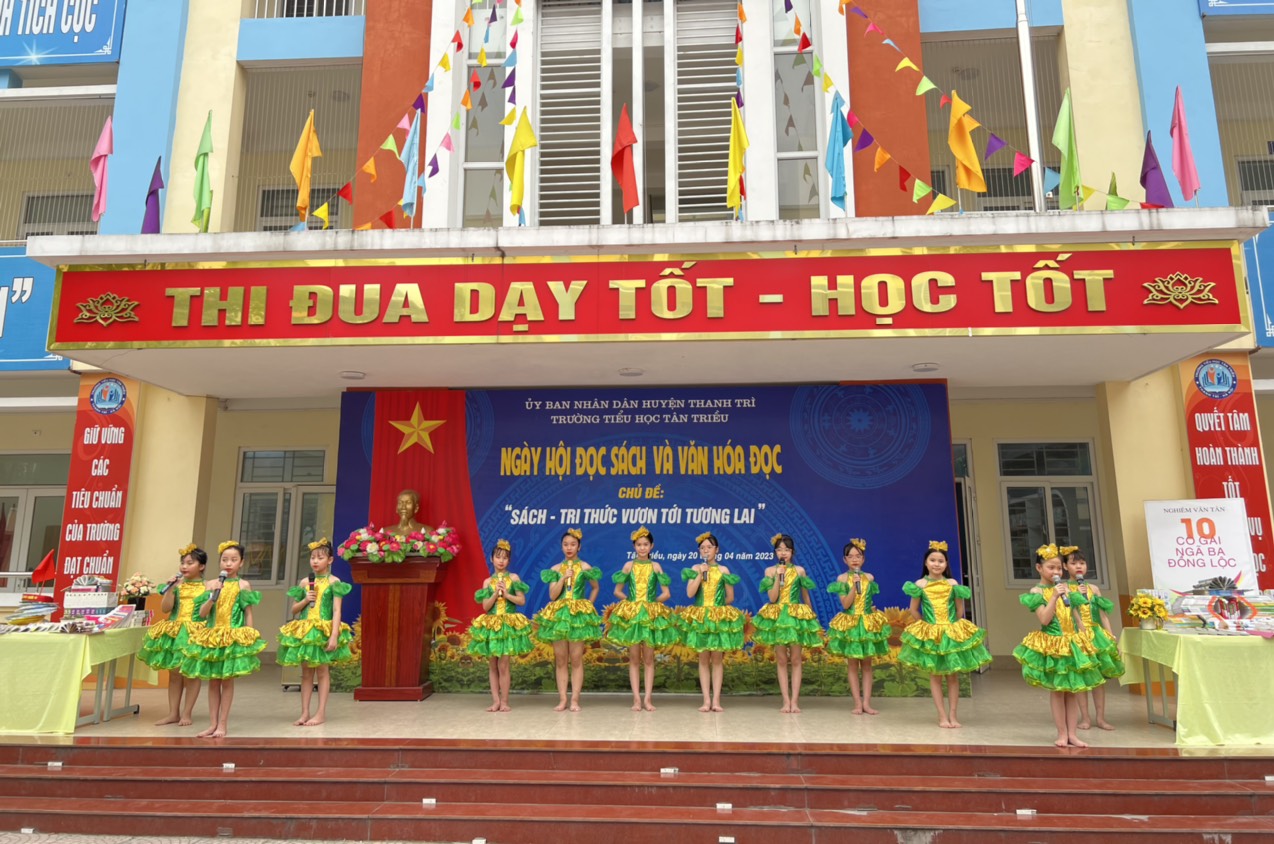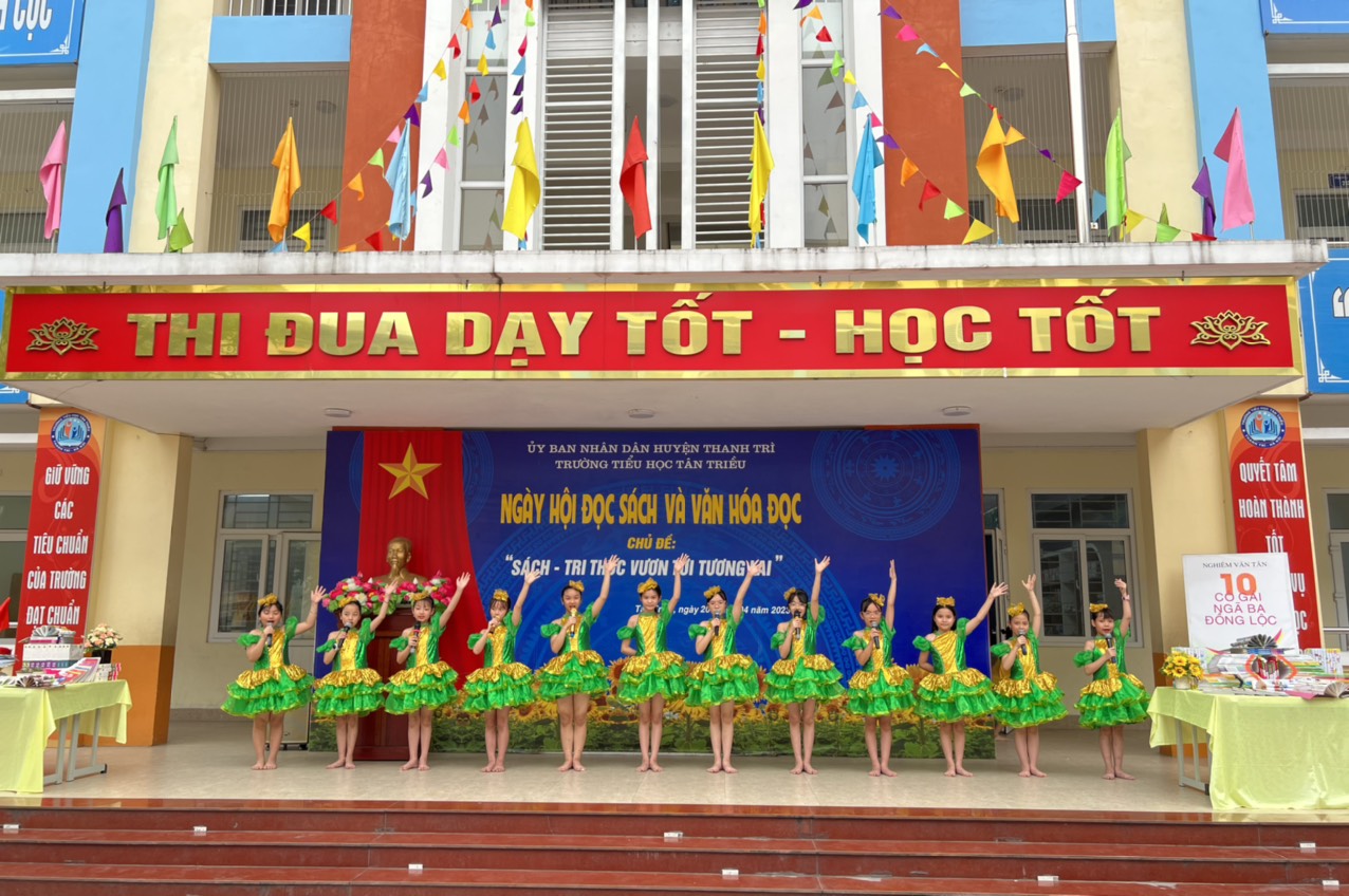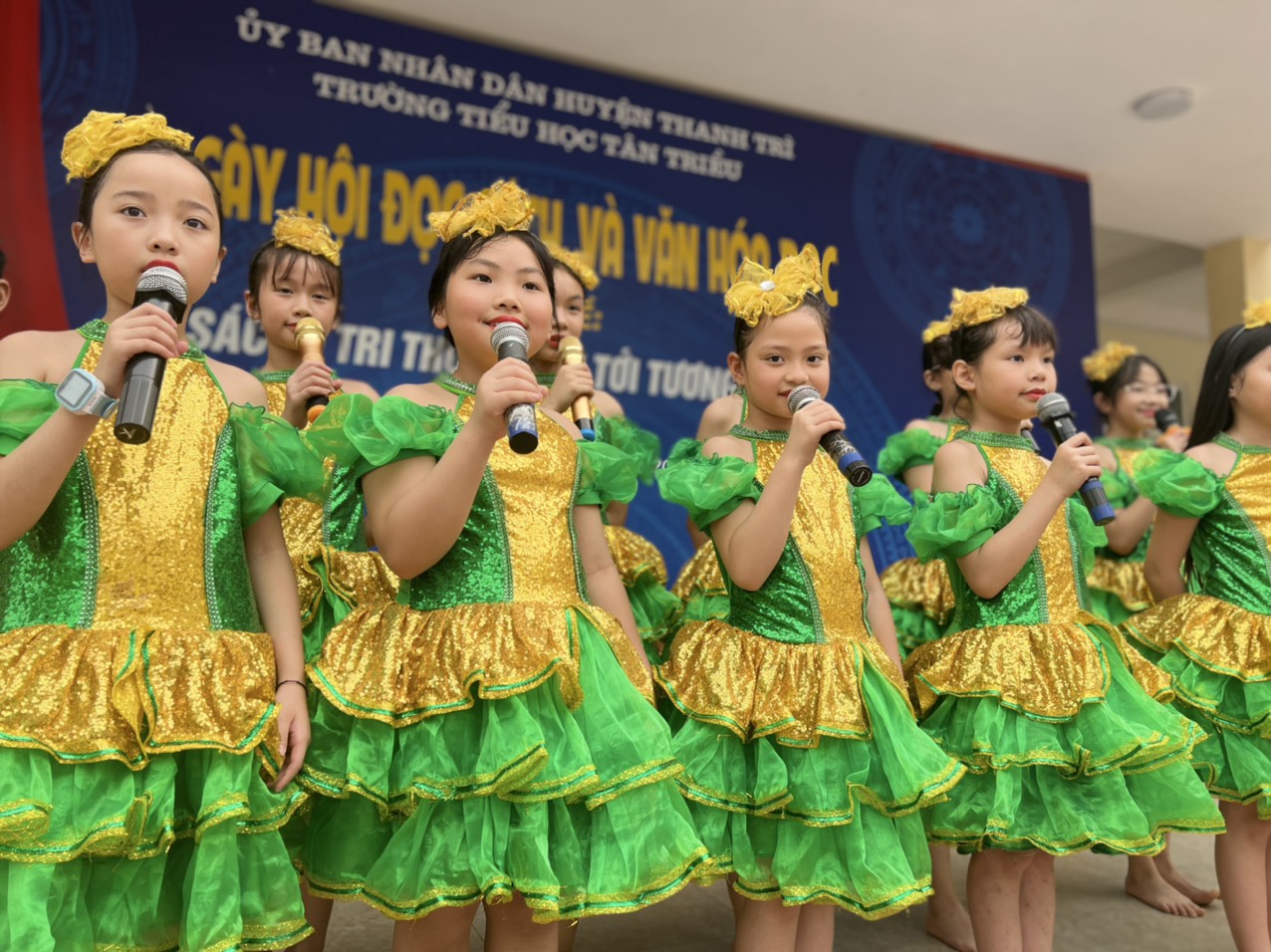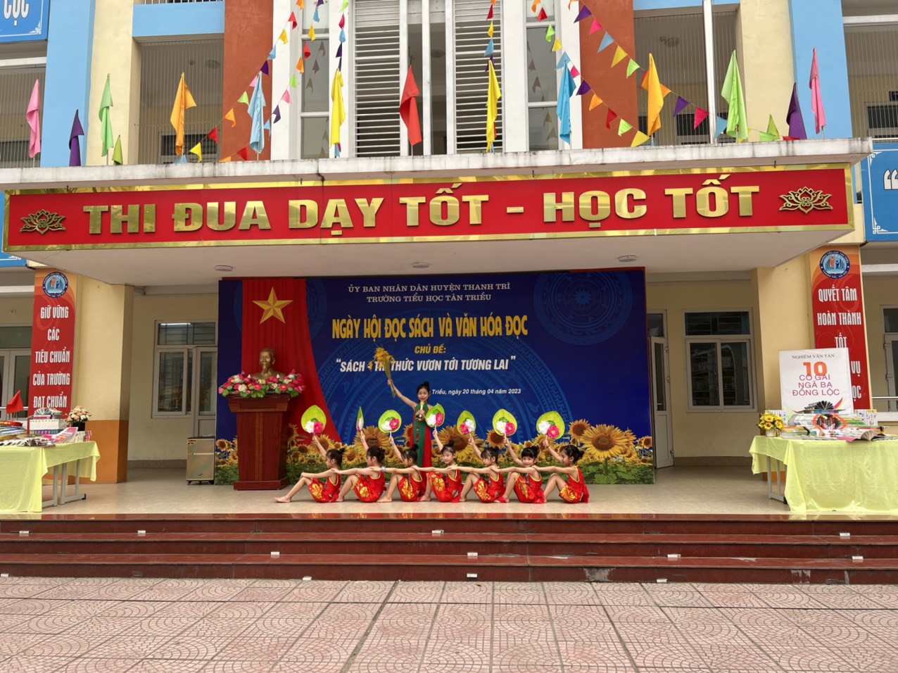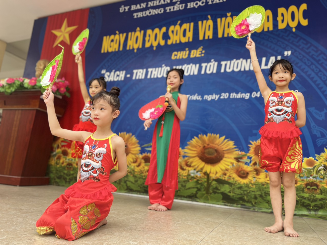 📚Ngày hội đọc sách tại Trường Tiểu học Tân Triều mang ý nghĩa nhân văn sâu sắc, giúp các em học sinh được tiếp cận với nhiều loại sách, tìm được niềm vui trong đọc sách, hình thành thói quen đọc sách bổ ích để mở rộng kiến thức, nuôi dưỡng tâm hồn; góp phần giáo dục kĩ năng sống. Đây còn là dịp để học sinh giao lưu, học tập tạo nên không gian văn hoá, vui tươi, bổ ích cho tất cả bạn đọc và những người yêu sách, đồng thời tôn vinh sách, khẳng định vai trò, giá trị của sách trong đời sống xã hội. Đặc biệt trong ngày hội, bạn Đào Thu Giang lớp 5A4 cùng các bạn trong đội văn nghệ nhà trường đã tái hiện lại hoạt cảnh của câu chuyện 10 cô gái Ngã ba Đồng Lộc vô cùng xúc động và ấn tượng.